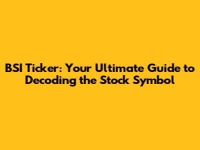 Hey everyone! Ever stumbled upon a stock ticker and thought, "What in the world is that?" Well, if you've come across the BSI ticker, you're in the right place! Today, we're diving deep into the world of stock symbols, specifically the BSI ticker, and breaking down everything you need to know. Think of this as your personal cheat sheet to understanding what this ticker means, where it comes from, and what it represents. We're going to cover everything from the basics to some insider tips that will help you navigate the stock market like a pro. So, grab a coffee (or your favorite beverage), get comfy, and let's unravel the mystery of the BSI ticker together. This is going to be an exciting journey into the heart of financial markets, designed to make understanding stocks easy and fun for everyone, even if you're just starting out.