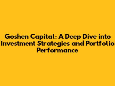 Goshen Capital: Unveiling Investment Strategies & Portfolio