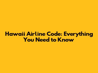 Hawaii Airline Code: Everything You Need To Know