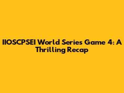 Hey sports fans! Buckle up, because we're diving deep into the IIOSCPSEI World Series Game 4, a contest that had us all on the edge of our seats! This game was more than just a contest; it was a battle of wills, a showcase of incredible talent, and a testament to the unpredictable nature of the sport we all adore. As a dedicated sports enthusiast, I'm here to give you the play-by-play, break down the key moments, and give you my two cents on what went down on the field. So, let's get into the heart of the matter and dissect every crucial moment that defined this unforgettable game.