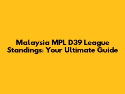 Malaysia MPL D39 League Standings: Your Ultimate Guide