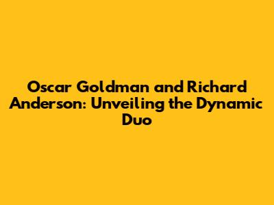 The Dynamic Duo: Goldman and Anderson