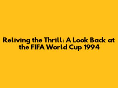 Reliving The Thrill: A Look Back At The FIFA World Cup 1994