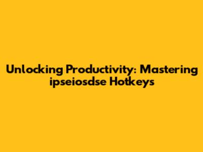 Unlocking Productivity: Mastering Ipseiosdse Hotkeys