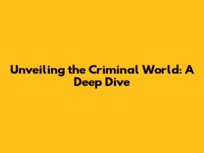 Unveiling The Criminal World: A Deep Dive
