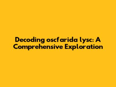 Unveiling The Enigma: Decoding Oscfarida Lysc's World