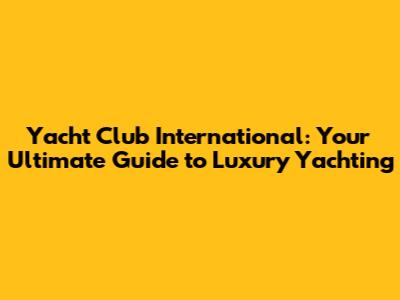 Yacht Club International: Your Gateway To Luxury Yachting